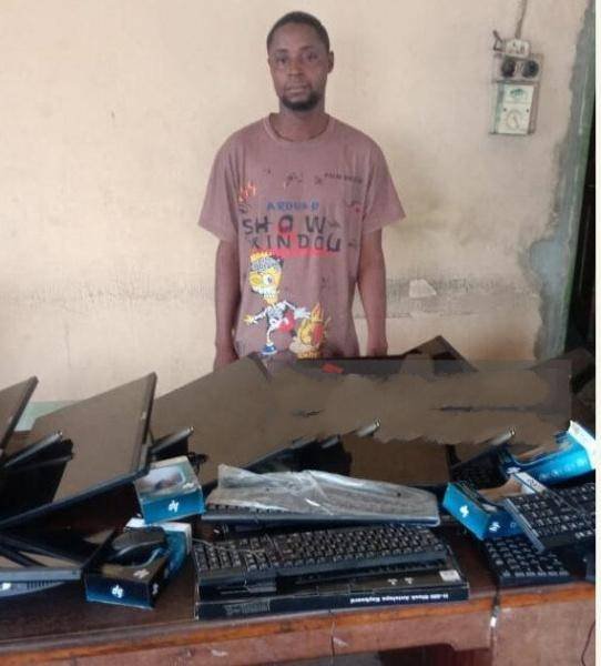 According to a statement made by the command’s spokesperson, DSP Bright Edafe, the suspect, Oki Precious, 34, was apprehended after a report about the stolen laptops was submitted by the school administration on March 2.